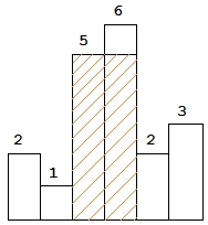 Above is a histogram where width of each bar is 1, given height =[2,1,5,6,2,3].