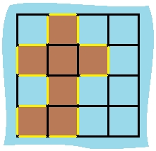 Explanation: The perimeter is the 16 yellow stripes in the image below: